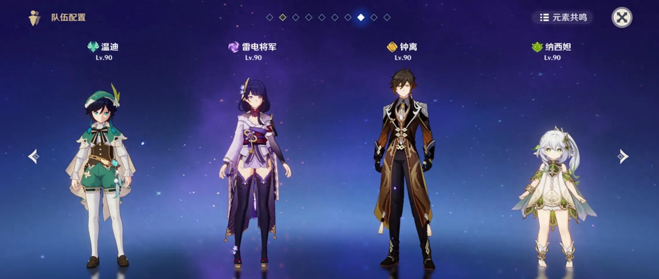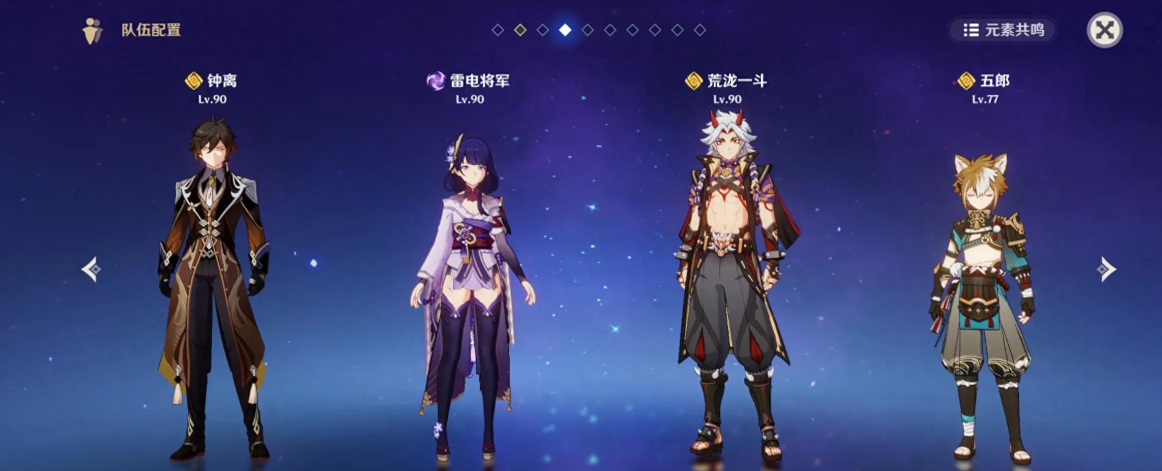 2、神明队: 雷神可以与其他三位神明角色组成四神队伍,适用于大世界环境。