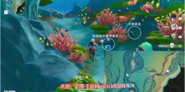 往地图的东南方向游,获得异色重甲蟹能力。