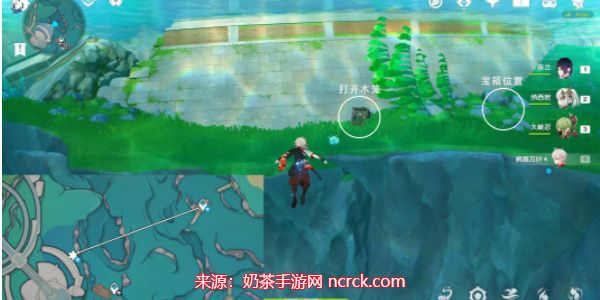 无需传送,从当前位置继续往东北方向游。