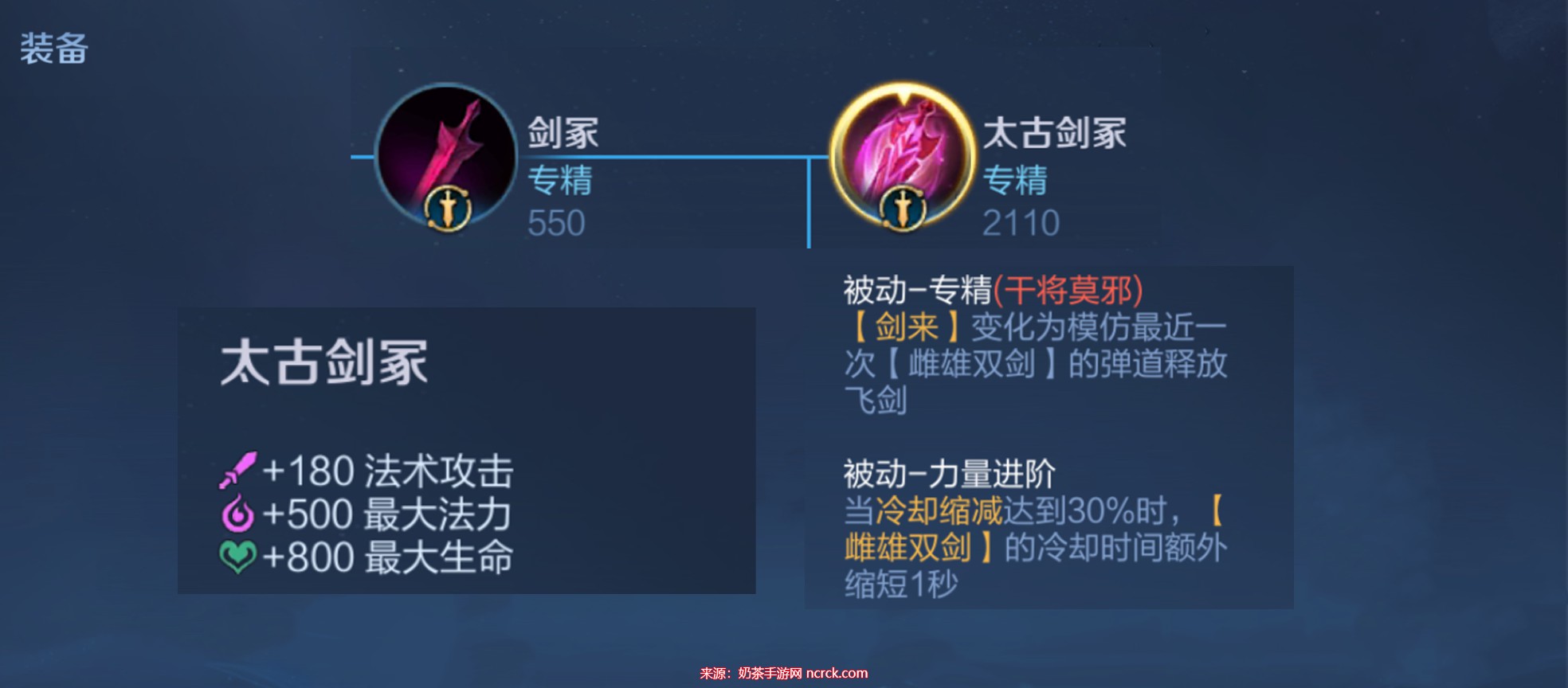 太古剑冢的装备属性看似平衡,但其核心在于两个独特的被动效果,这些效果将彻底改变干将的玩法。